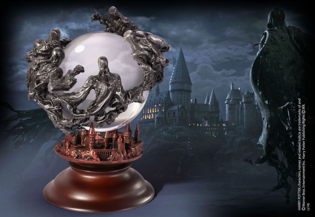 Una escultura única que representa a Hogwarts custodiado por Dementores que vuelan por encima. Elaborado en peltre y madera con una bola de cristal transparente.