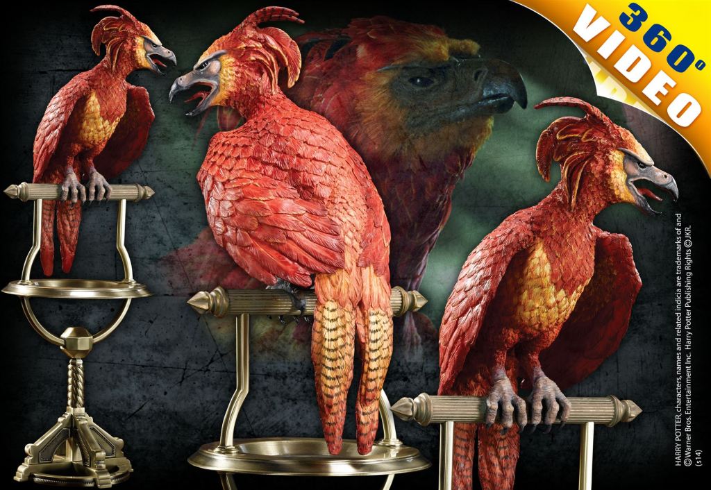 Una impresionante escultura del Fénix de Albus Dumbledore encaramado en su soporte como se ve en la serie de películas de Harry Potter. Mide 36 cm de altura.