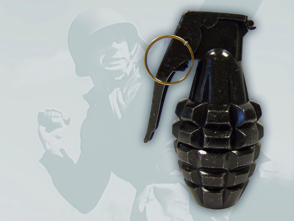 Granada de mano MK 2 o piña, USA (2ª Guerra Mundial). Réplica de metal. Tamaño 11,5 cm.