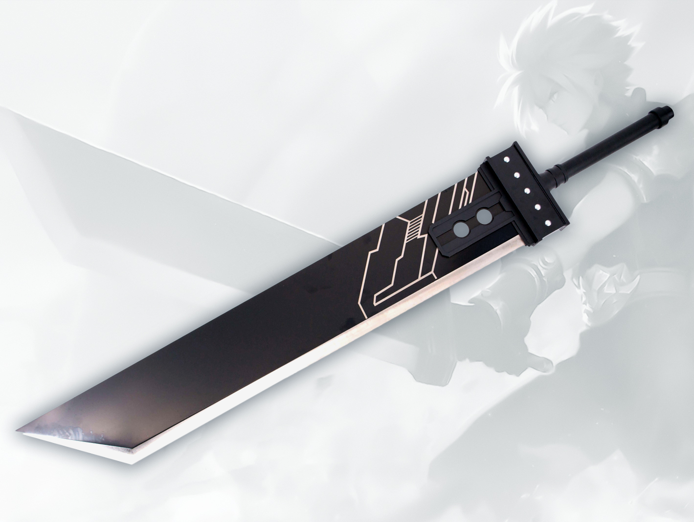 Espada mortal de Cloud ‘Final Fantasy 7’. Réplica no oficial, con un tamaño total de 140 cm, hoja negra con corte satinado y mango encordado negro.