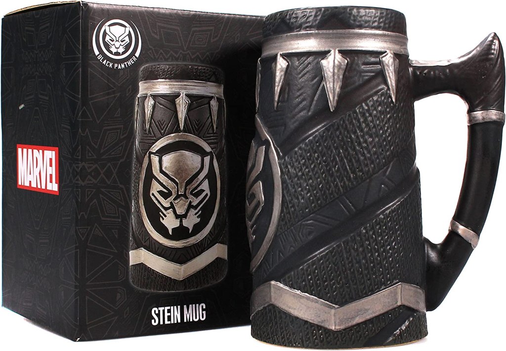 Detalles plateados y grabados en relieve. Logo ‘Black Panther’ grabado en relieve. Licencia oficial Marvel. Capacidad: 800 ml. Medidas: 12,5 cm x 19 cm x 12 cm. No apto para lavavajillas o microondas.