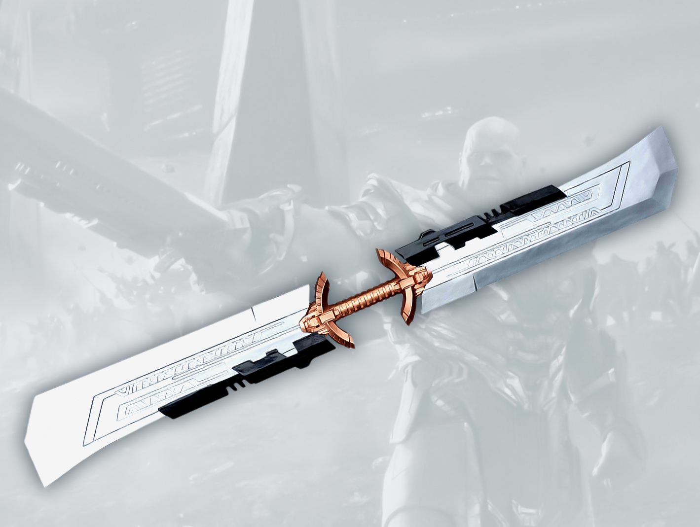 Réplica no oficial de la espada de Thanos. La espada es de color níquel con detalles muy bien acabados. Hecho de fibra de vidrio. Tamaño completo: 156 cm.