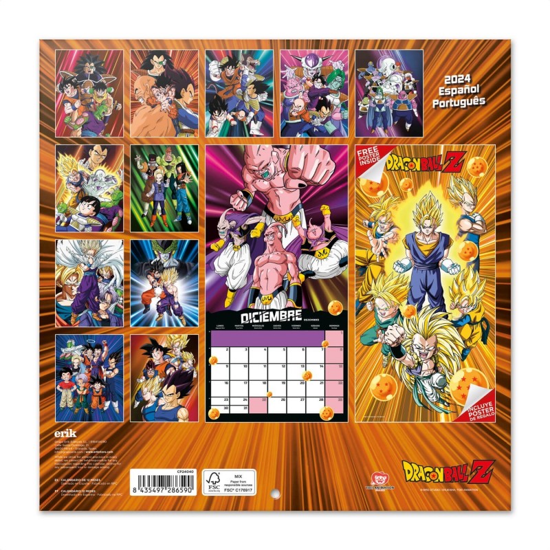 Este calendario de pared de ‘Dragon Ball’ tiene una duración total de 12 meses que abarcan desde Enero hasta Diciembre de 2024. Incluye 12 imágenes y un póster central en su interior. Respecto a su tamaño, mide 30 cm de ancho por otros 30 de alto.