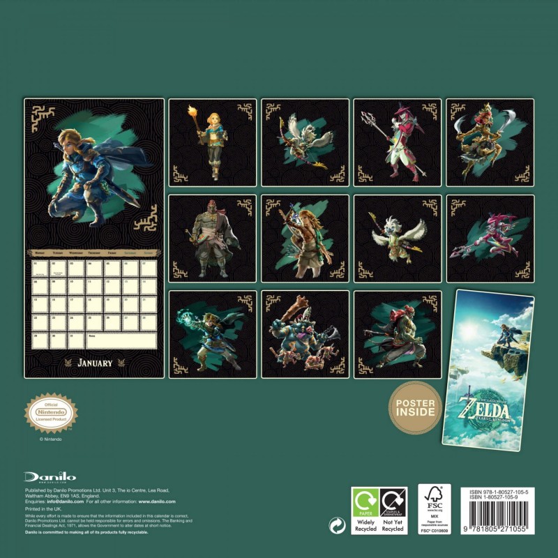 Este calendario de pared de ‘The Legend of Zelda’ tiene una duración total de 12 meses que abarcan desde Enero hasta Diciembre de 2024. Incluye diferentes ilustraciones para cada mes del año y un póster en su interior. Tiene un tamaño de 30 cm de ancho por otros 30 de alto.