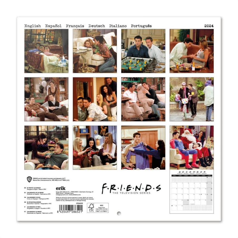 Este calendario de pared de ‘Friends’ tiene una duración total de 16 meses que abarcan desde Septiembre de 2023 hasta Diciembre de 2024. Incluye 12 imágenes diferentes en su interior. Respecto a su tamaño, mide 30 cm de ancho por otros 30 de alto.