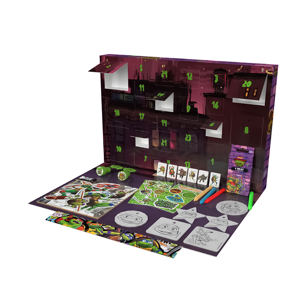CYP Brands presenta este calendario de adviento de la colección ‘Teenage Mutant Ninja Turtles’. El calendario tiene 24 sorpresas, entre ellas, 1 pequeño puzzle, 1 caja con ceras para colorear, 1 par de sellos y muchas otras sorpresas.
