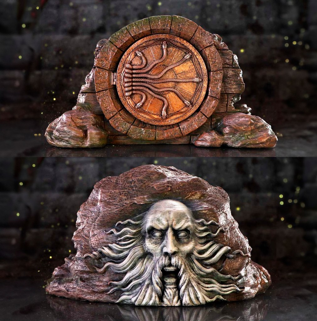 Esta caja cuenta con serpientes grabadas en la entrada y con la cara de Salazar Slytherin en la parte posterior. Fundida en la mejor resina y pintada a mano, es ideal para almacenar tus pequeños tesoros. Tamaño aprox. 25 cm.