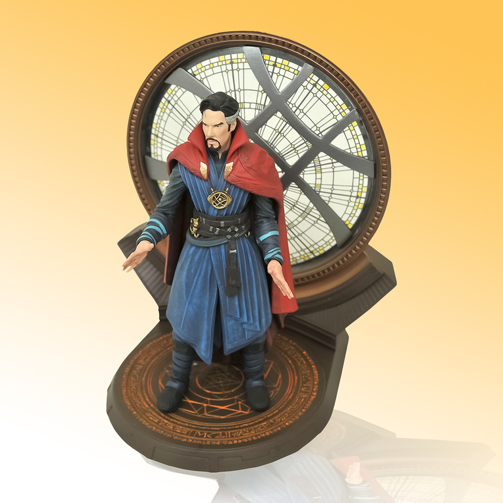 Esta figura está inspirada en la película ‘Doctor Strange en el Multiverso de la Locura’ y pertenece a la colección Marvel Select de Diamond Select Toys. Está fabricada en PVC de alta calidad y cuenta con un gran nivel de detalle tanto en la pintura como en la escultura. La figura mide unos 18 cm e incluye accesorios de lanzamiento de hechizos y una base de Sanctum.