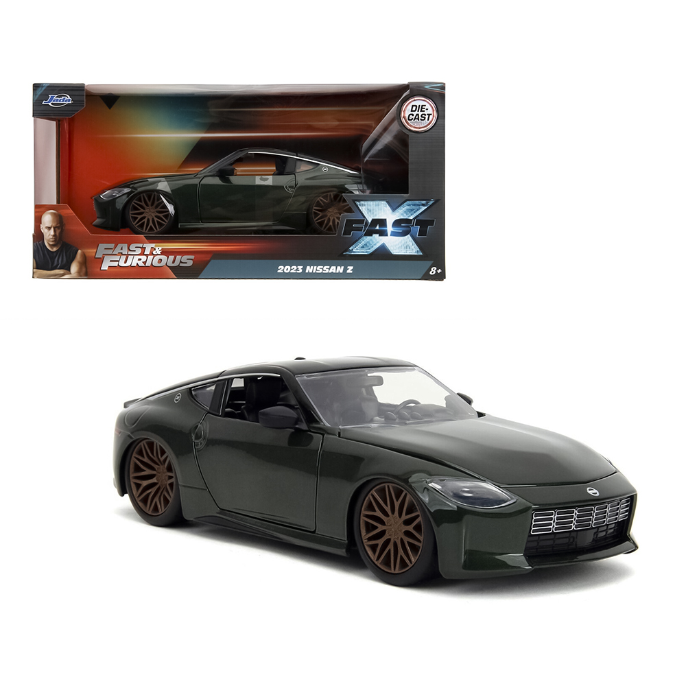 Réplica Nissan Z 2023, a escala 1/24. Fabricado en metal fundido a presión con neumáticos de goma. Las puertas, el capó y el maletero se abren.