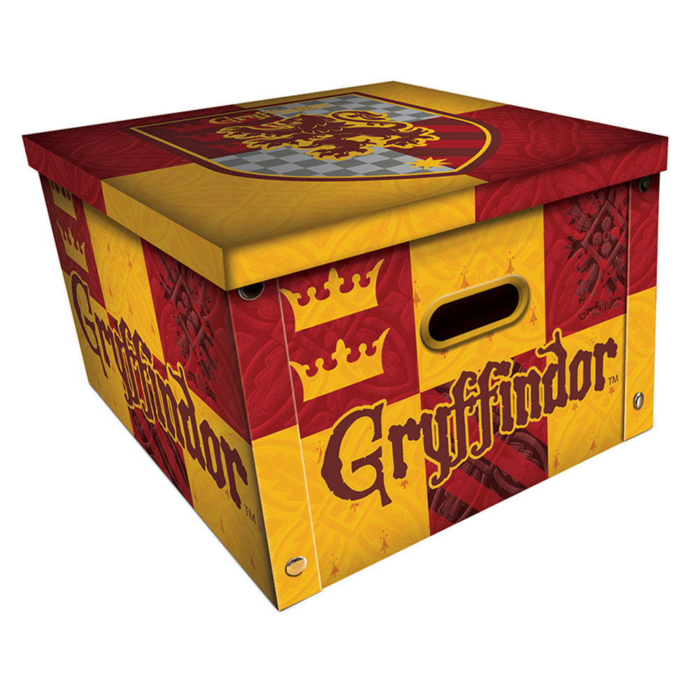 Caja de almacenaje decorada con la bandera de la casa de Gryffindor, en cartón laminado. Medidas: 36,7 x 36,7 x 23,8 cm.
