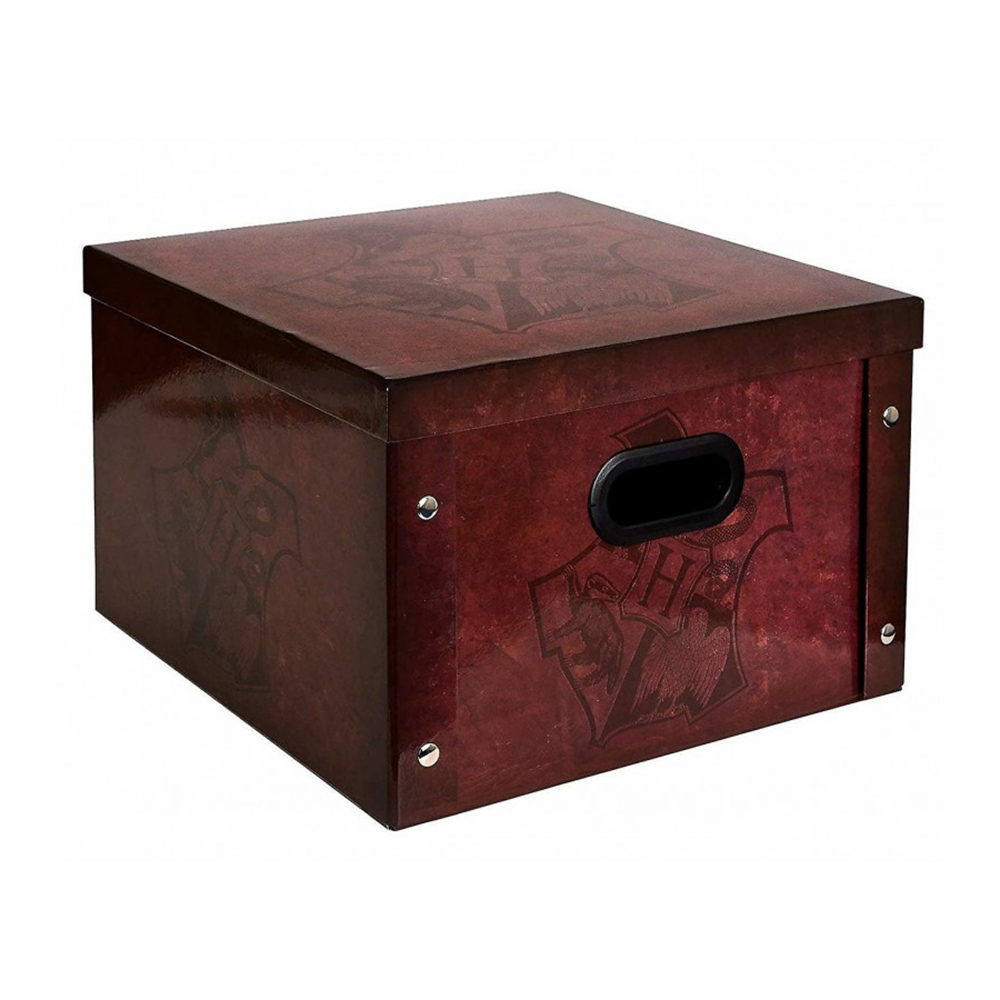Caja de almacenaje en cartón laminado decorada con el símbolo de Hogwarts, con los cuatro animales que representan a las cuatro casas del colegio. Medidas: 36,7 x 36,7 x 23,8 cm.