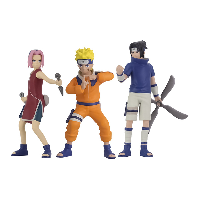 Set que incluye 3 figuras de PVC de los emblemáticos personajes de la serie animada ‘Naruto’: Naruto, Sasuke y Sakura. Altura aproximada: 10 cm.