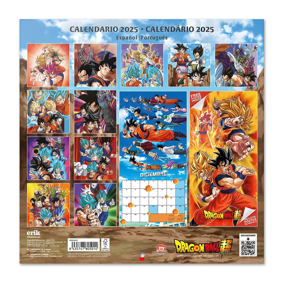 Calendario de pared de 12 meses de Enero a Diciembre 2025. Tiene un tamaño abierto de 60 x 30 cm. Contiene 12 imágenes y un póster en su interior. Fabricado en papel laminado con acabado en mate. Encuadernación grapada. Cuenta con una perforación circular para colgarlo. Idiomas: español y portugués.