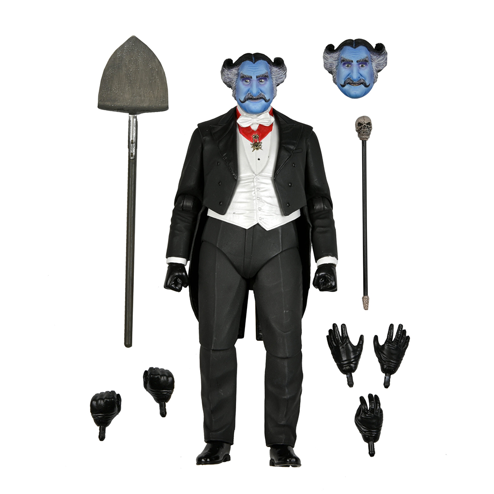 Este venerable vampiro, de la película ‘Rob Zombie’s The Munsters’ mide 18 cm. La figura está repleta de características y accesorios para el coleccionista más exigente. Incluye una capa extraíble, cabeza intercambiable, pala, bastón de calavera y manos alternativas. Se presenta en una caja de 5 paneles con solapa frontal que incluye ilustraciones personalizadas de Daniel Horne.