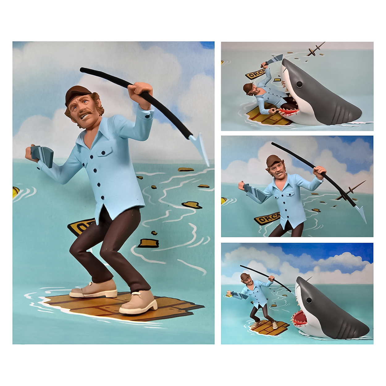 Neca presenta este pack de 2 figuras de personajes de terror, en una versión de adorables y pequeños monstruos basados en los dibujos animados para la colección Toony Terror. Las figuras de Quint y el tiburón, basadas en la película ‘Jaws’, miden aprox. 15 cm. Incluye machete y arpón para Quint, una aleta extra para el tiburón y una base soporte para exposición.