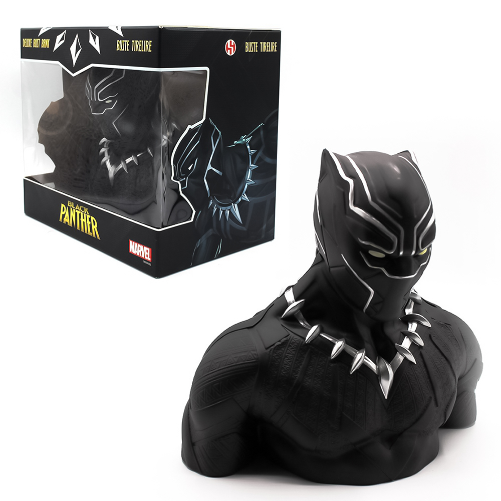 Hucha de PVC de unos 22 cm. Una ranura en la espalda del superhéroe permite la entrada de las monedas, y en el fondo, una tapa para extraerlas.
