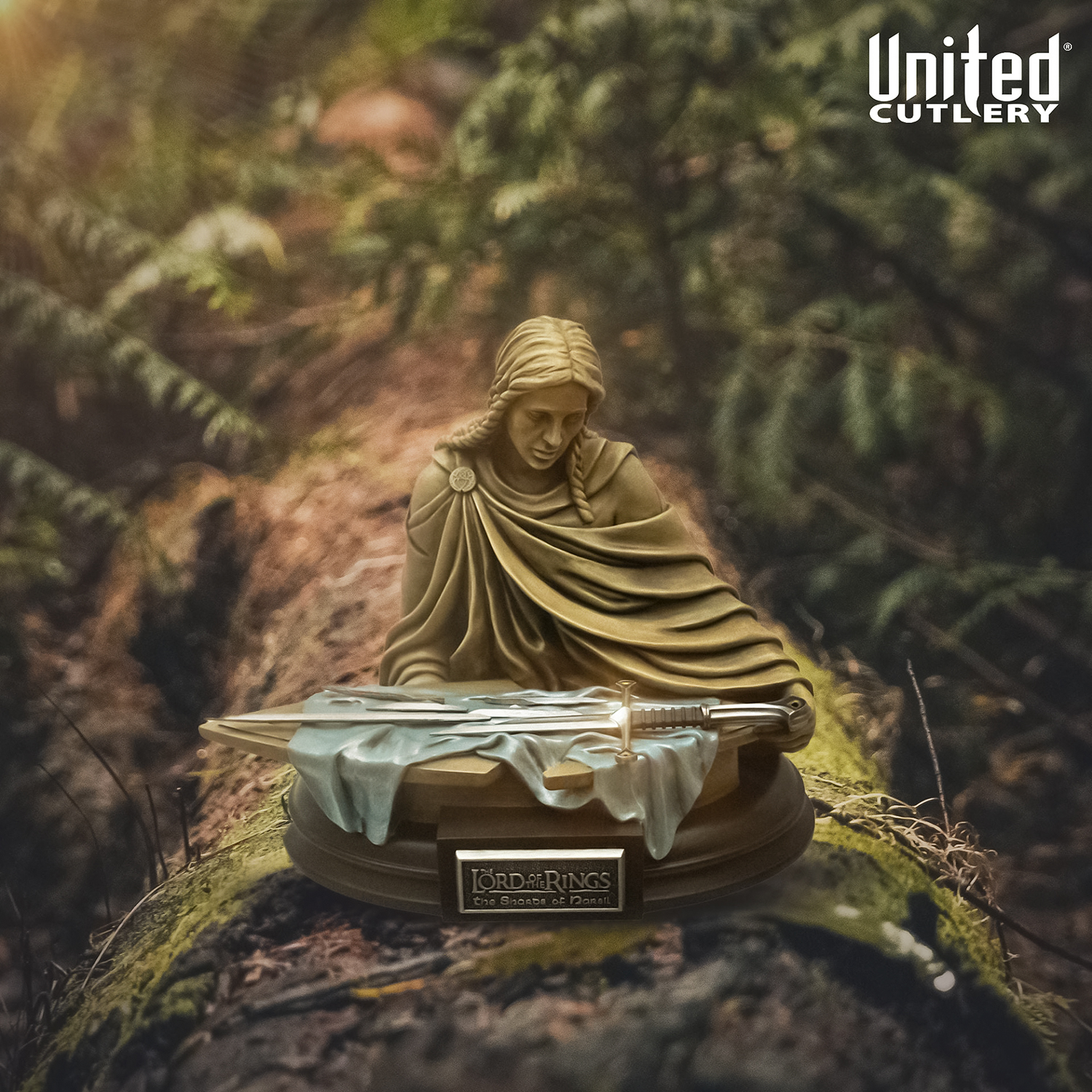 Los fragmentos de Narsil se presentan en una escala 1/5, reproduciendo con gran detalle los pedazos de la espada legendaria. Esta exquisita presentación incluye una estatua pintada a mano de una princesa élfica que sostiene un escudo donde reposan los fragmentos de Narsil. Cada detalle ha sido cuidadosamente diseñado para capturar la esencia de esta mítica escena. Estatua de poliresina. Tamaño aprox. 20 cm.