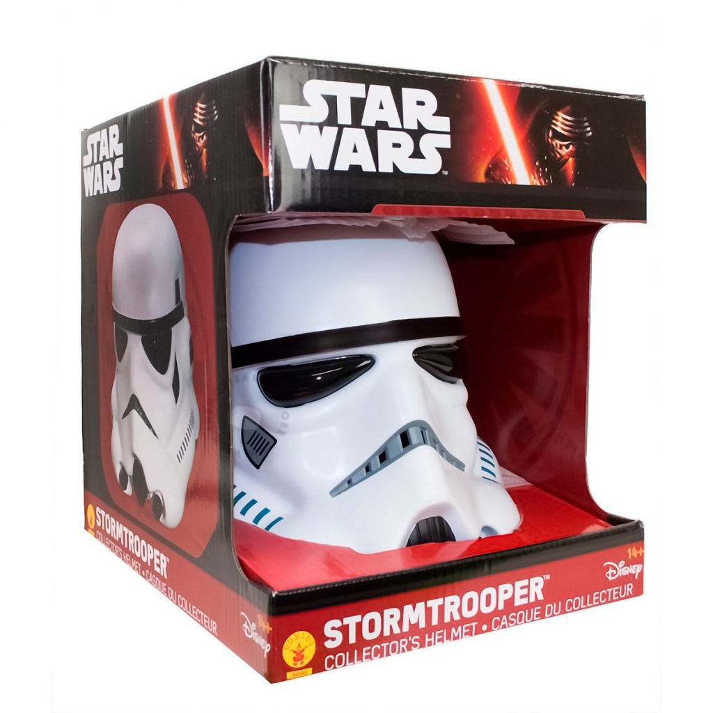 Casco a tamaño real de los Stormtrooper o soldados de asalto imperiales de ‘Star Wars’. Está realizado por el prestigioso fabricante Rubies en PVC de alta calidad y recubierto totalmente por material de amortiguación, con un estabilizador para que no se te mueva y con una correa ajustable.