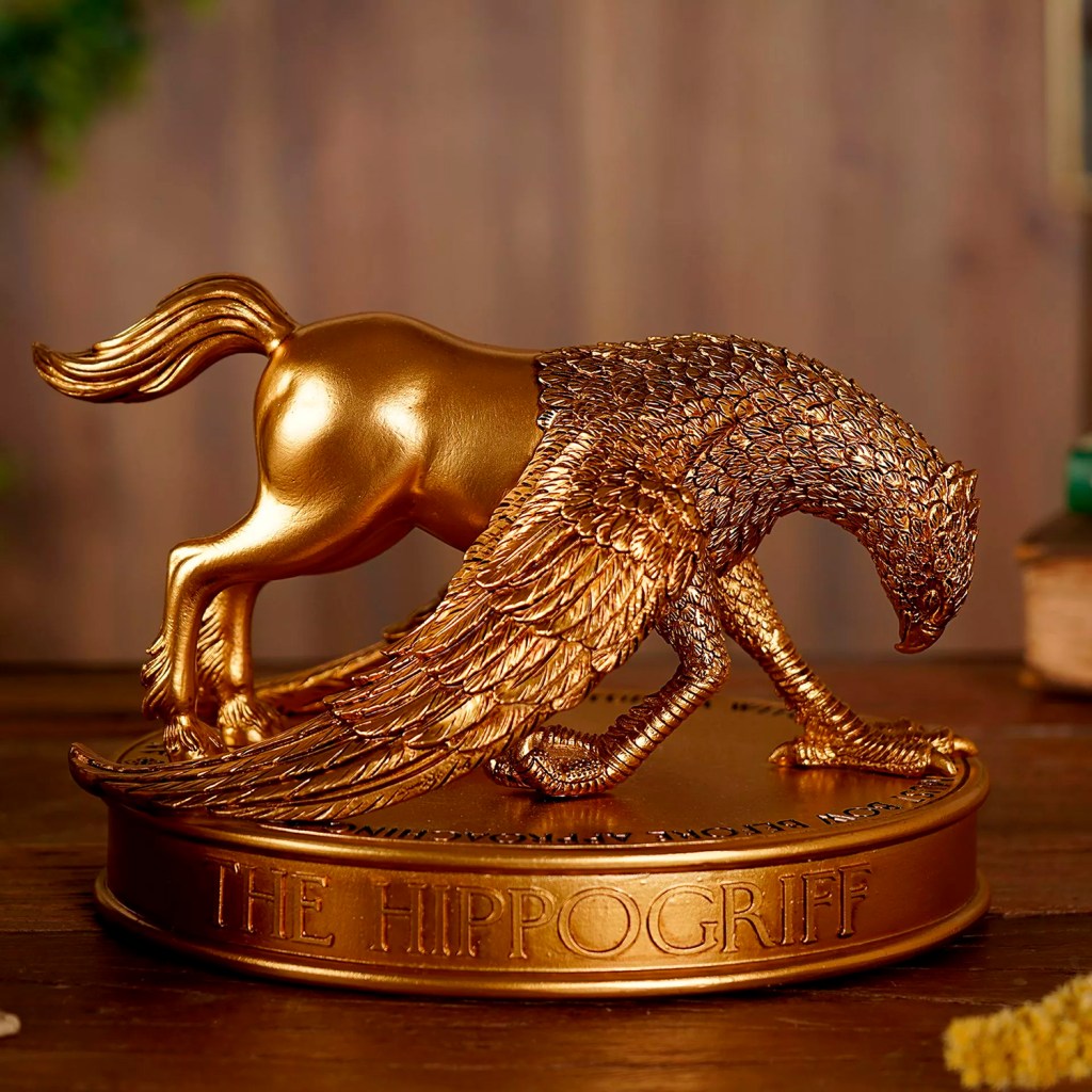 Lleva la magia de Harry Potter a tu hogar con esta encantadora figura de Buckbeak. Este coleccionable da vida a Hogwarts al representar al majestuoso hipogrifo en una pose sorprendente, con impresionantes alas. Esta hermosa figura de tonos dorados, intrincadamente detallada, se asienta sobre una base con la inscripción ‘The Hippogriff’. Tamaño aprox. 17 cm.