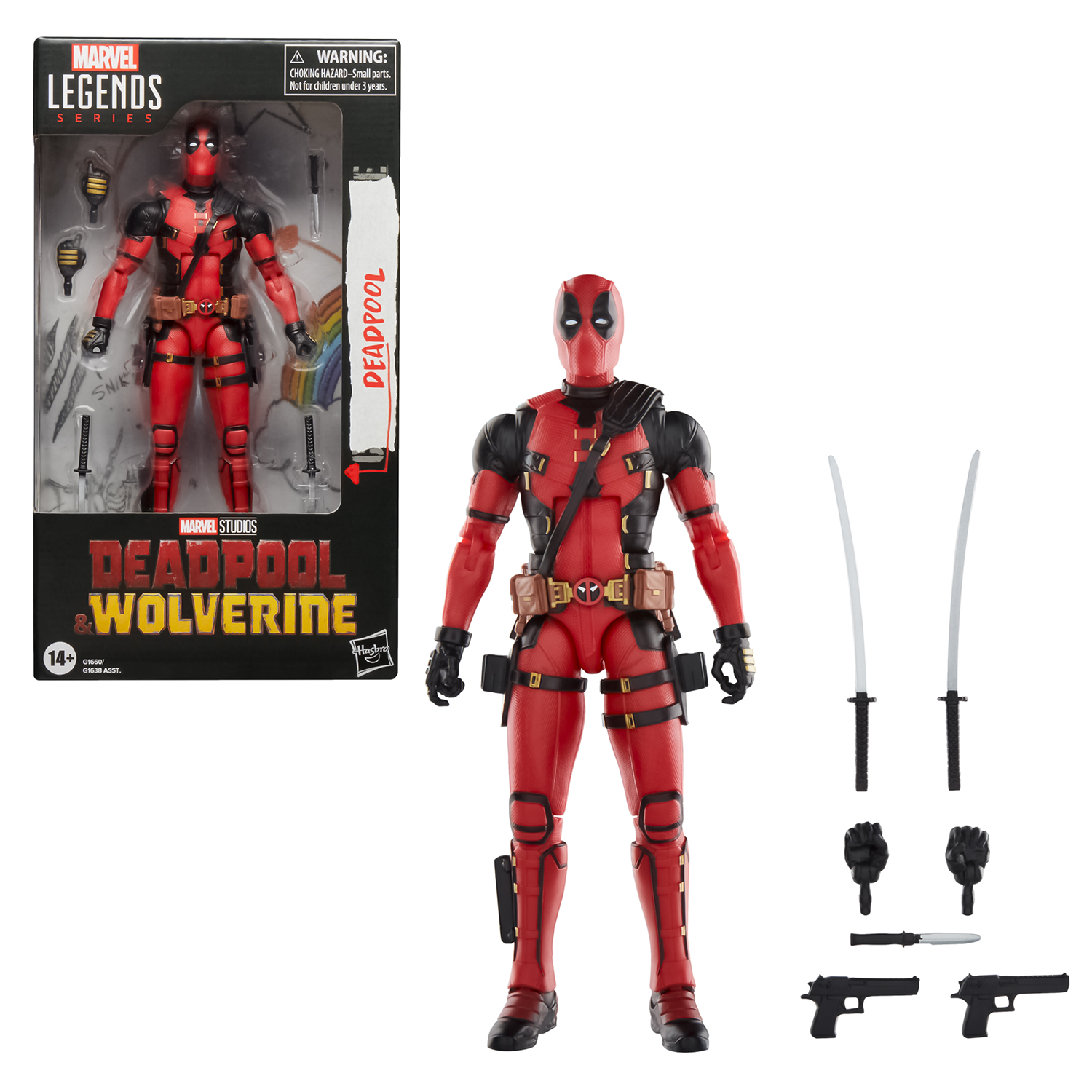 Figura de la línea ‘Marvel Legends Series’ de Deadpool, de 15 cm. La figura cuenta con diseño detallado y múltiples puntos de articulación con cabeza, brazos y piernas posables, así como decoración premium. Viene con 7 accesorios, incluyendo las emblemáticas catanas de Deadpool, 2 manos alternativas y un cuchillo.