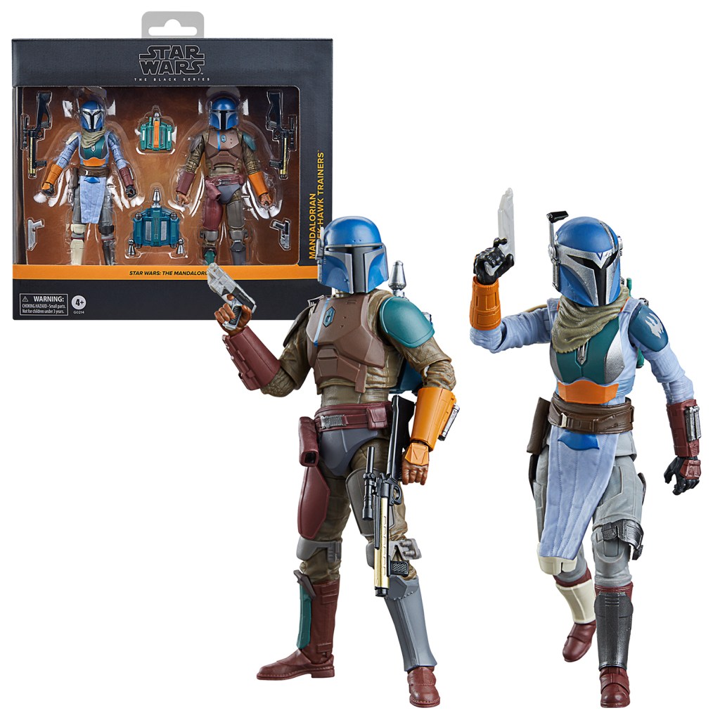 Estas figuras de 15 cm cuentan con diseño premium y múltiples puntos de articulación. Cada figura de Mandalorian Shriek-Hawk Trainer viene con un bláster largo y otro corto y una mochila-propulsora. De la linea ‘The Black Series’ de Hasbro.