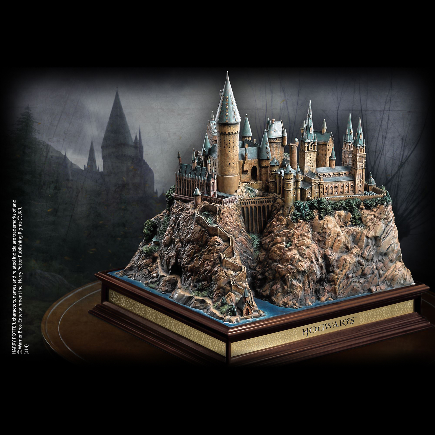 Una escultura de resina increíblemente detallada y precisa de Hogwarts. Cada edificio está intrincadamente esculpido y pintado a mano. La escuela está ubicada en lo alto de un acantilado y el paisaje rodea los terrenos. Incluye una base de exhibición de madera dura. Mide aproximadamente 33 cm de altura.