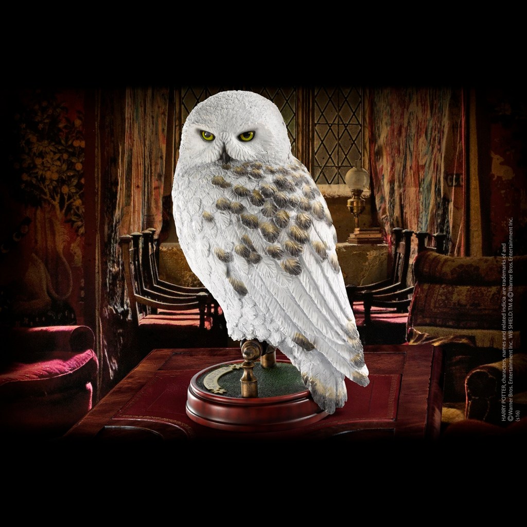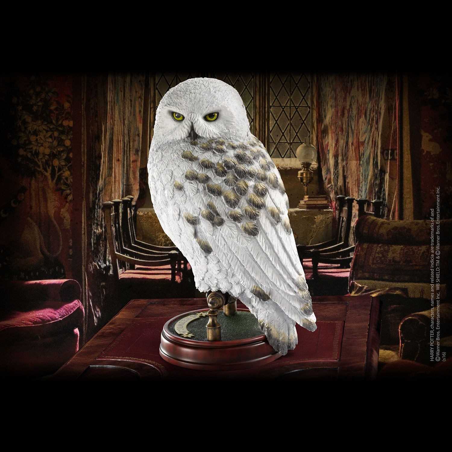 Escultura de resina pintada a mano. La figura mide 24 cm de altura y cuenta con un pedestal de madera donde la lechuza está posada e incluye una placa dorada donde figura su nombre.