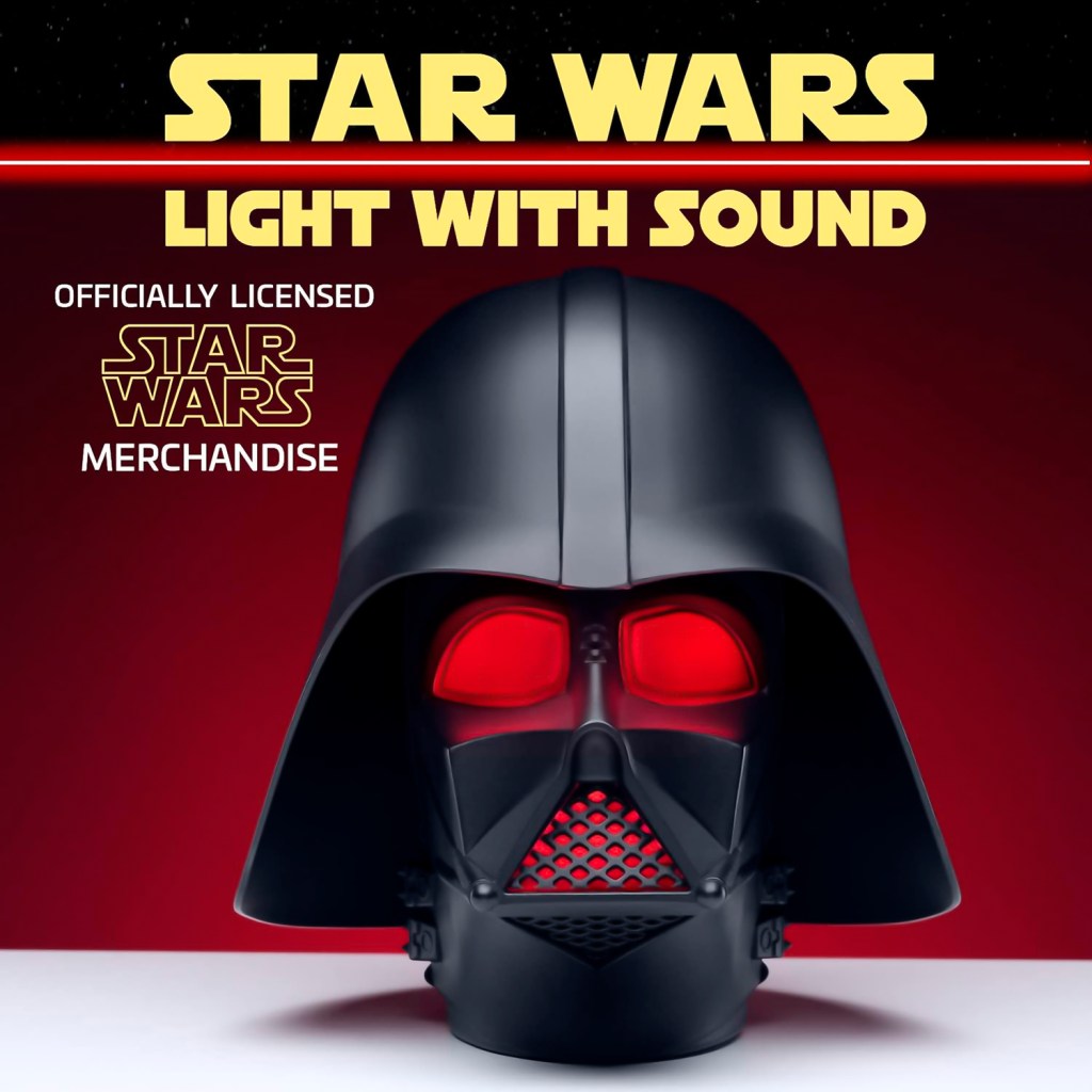 Lámpara con la forma de la cabeza de Darth Vader. Reproduce el sonido de la respiración del personaje y además los ojos y la boca se encienden en color rojo. Tamaño: 15 x 13 x 14 cm.