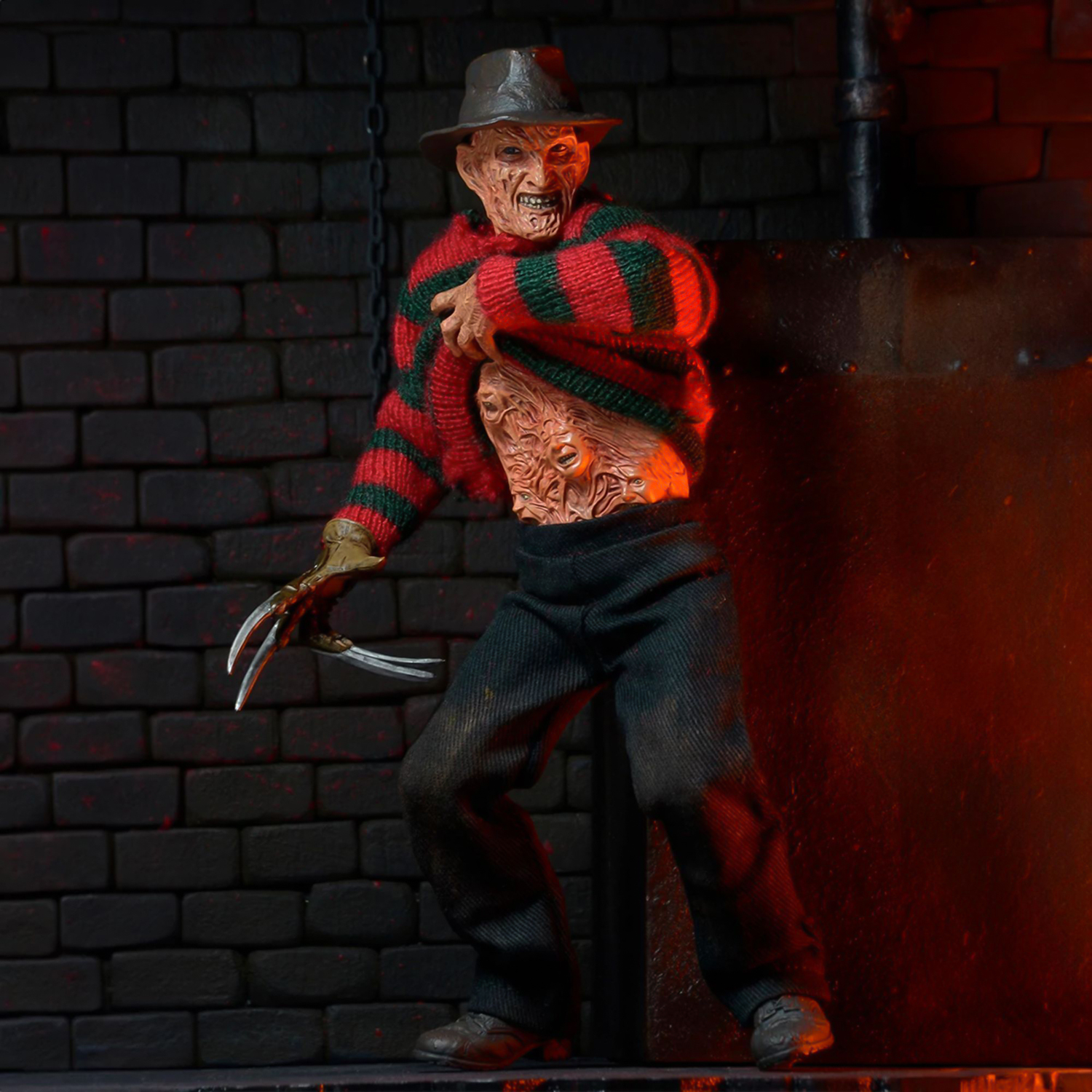 Neca vuelve a presentar, dentro de la colección Clothed Action Figure, la figura de Freddy. Mide 20 cm y está basada en su aspecto en la película de ‘A Nightmare on Elm Street 3: Dream Warriors’. Contiene 1 sombrero extraíble y 1 parte del torso para poder ver los espíritus torturados atrapados en su Cofre de las Almas. Se presenta en un blíster.