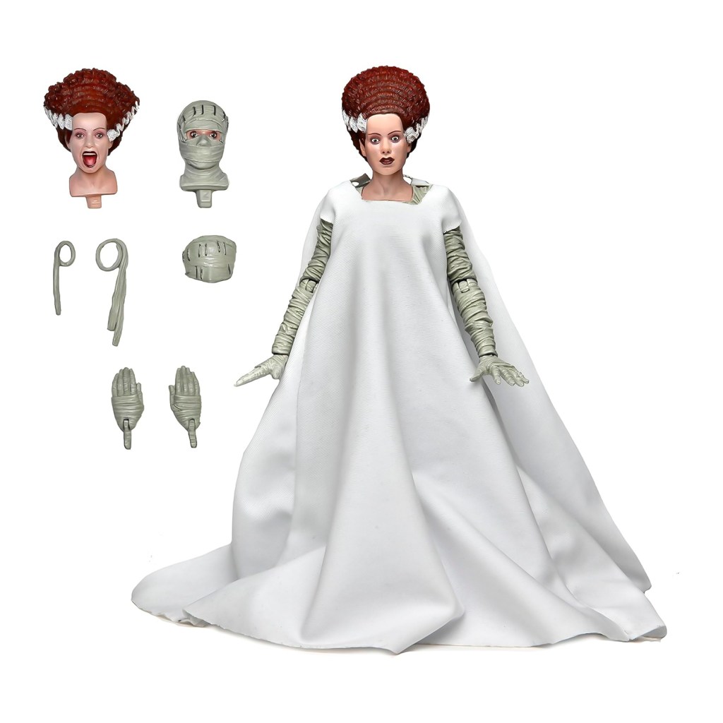 El debut de la película de Universal de 1935 ‘La Novia de Frankenstein’ prometió al público algo más temible que el propio monstruo. El retrato de Elsa Lanchester de la criatura cosida para ser la compañera del monstruo, se captura en esta detallada figura de acción de 18 cm. Repleta de accesorios, esta novia en color es una para agregar a su colección especial.