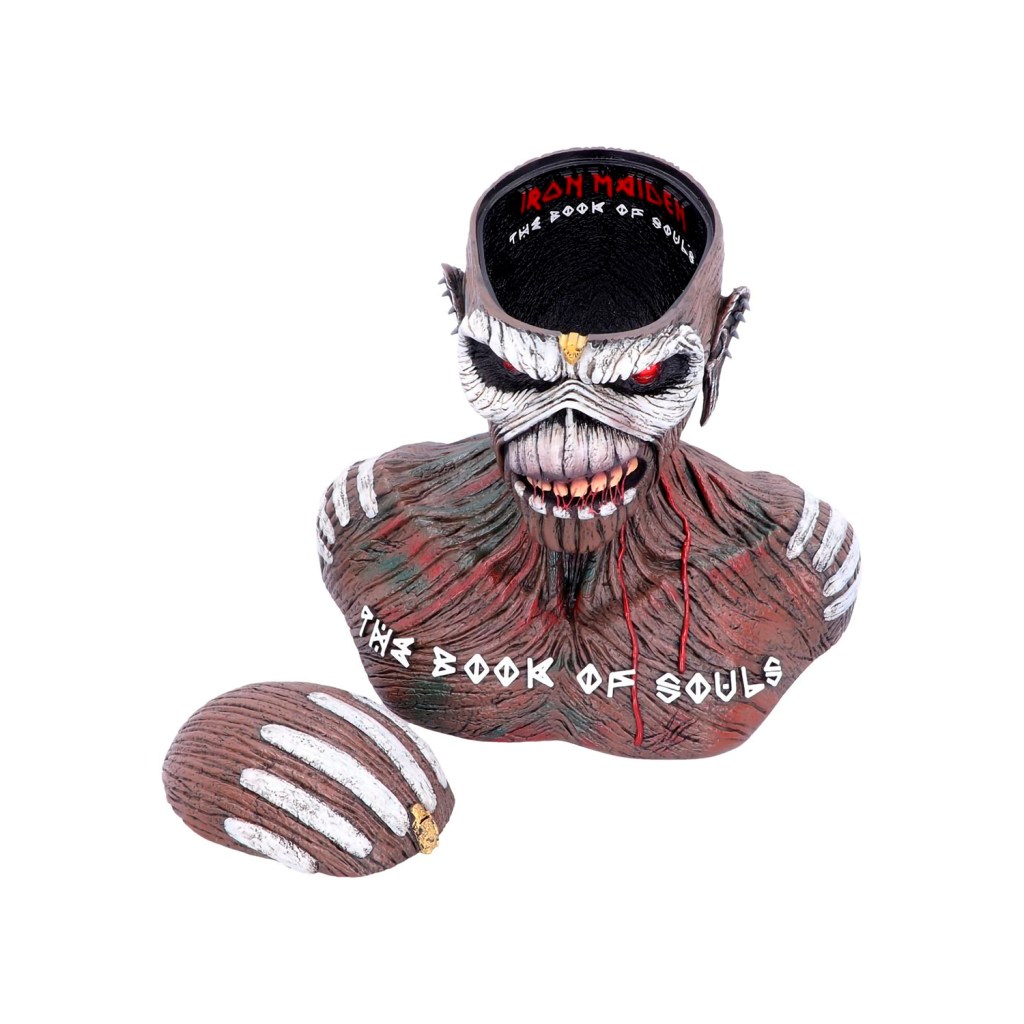Las icónicas palabras ‘El libro de las almas’ se extienden a lo largo del ancho de su pecho, y en la parte superior se puede quitar su cuero cabelludo para mostrar un pequeño espacio de almacenamiento, perfecto para guardar sus pertenencias más preciadas. Fundido en resina de alta calidad y pintado a mano por expertos. Tamaño: 26 cm.