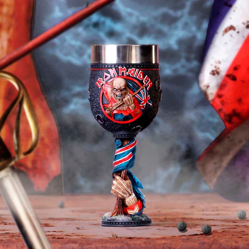 Con la mascota de la banda Eddie the Trooper mientras carga hacia adelante, con el estandarte en la mano, encarnando la feroz determinación y dedicación que la banda ha mostrado a lo largo de las décadas. Poliresina con inserción de acero inoxidable y pintado a mano. Tamaño: 19,5 cm.