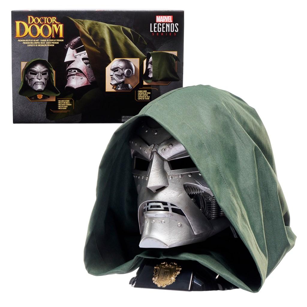Viene con una capucha de tela removible que se puede fijar a la máscara. Incluye una base que es perfecta para exhibir el casco. Esta máscara a escala 1/1 viene con una correa interior ajustable (la correa contiene látex natural).
