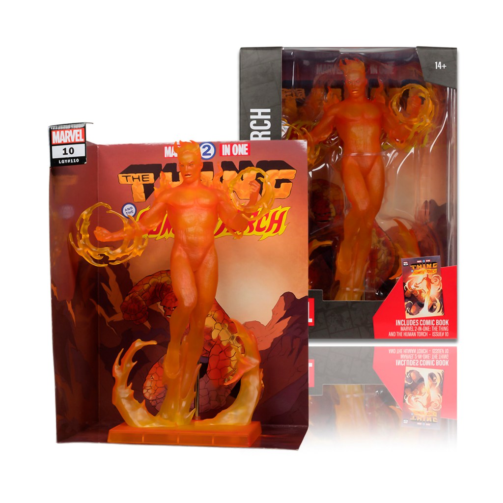 Inspirado en el número 10 del comic ‘The Thing & Human Torch’. Estatua de PVC de 29 cm con base ambiental y escena de fondo. Tarjeta de arte incluida con ilustraciones de personajes en la parte delantera y sinopsis cómica.