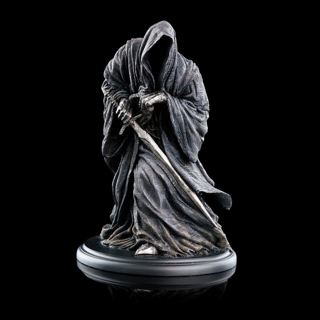Estatua de polipiedra de alta calidad con unas dimensiones aprox. de 11,5 x 15 x 11,5 cm. Finalizada y pintada a mano. De la linea Miniature Statues de Weta. Representa al Nazgûl visto en ‘La Comunidad del Anillo’.