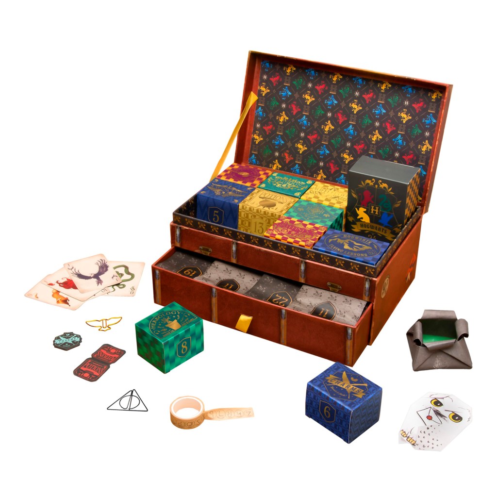 Esta caja de recuerdos está llena de golosinas temáticas, como un mini bloc de notas hinchadas, naipes, calcomanías de gadgets, marcadores magnéticos, cinta washi, sellos, clips de papel con forma, hojas de origami, un cuaderno, pegatinas, tarjetas y decoraciones, todo metido en un contenedor resistente y bellamente diseñado que se puede guardar mucho después de que el árbol de Navidad haya sido retirado.