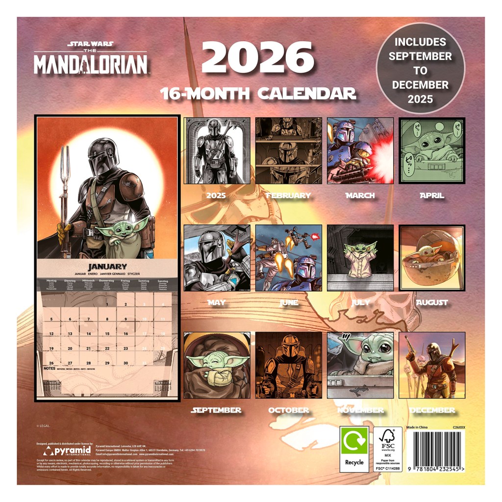 Calendario Pared 2026 (16 Meses) – ‘Star Wars: The Mandalorian’