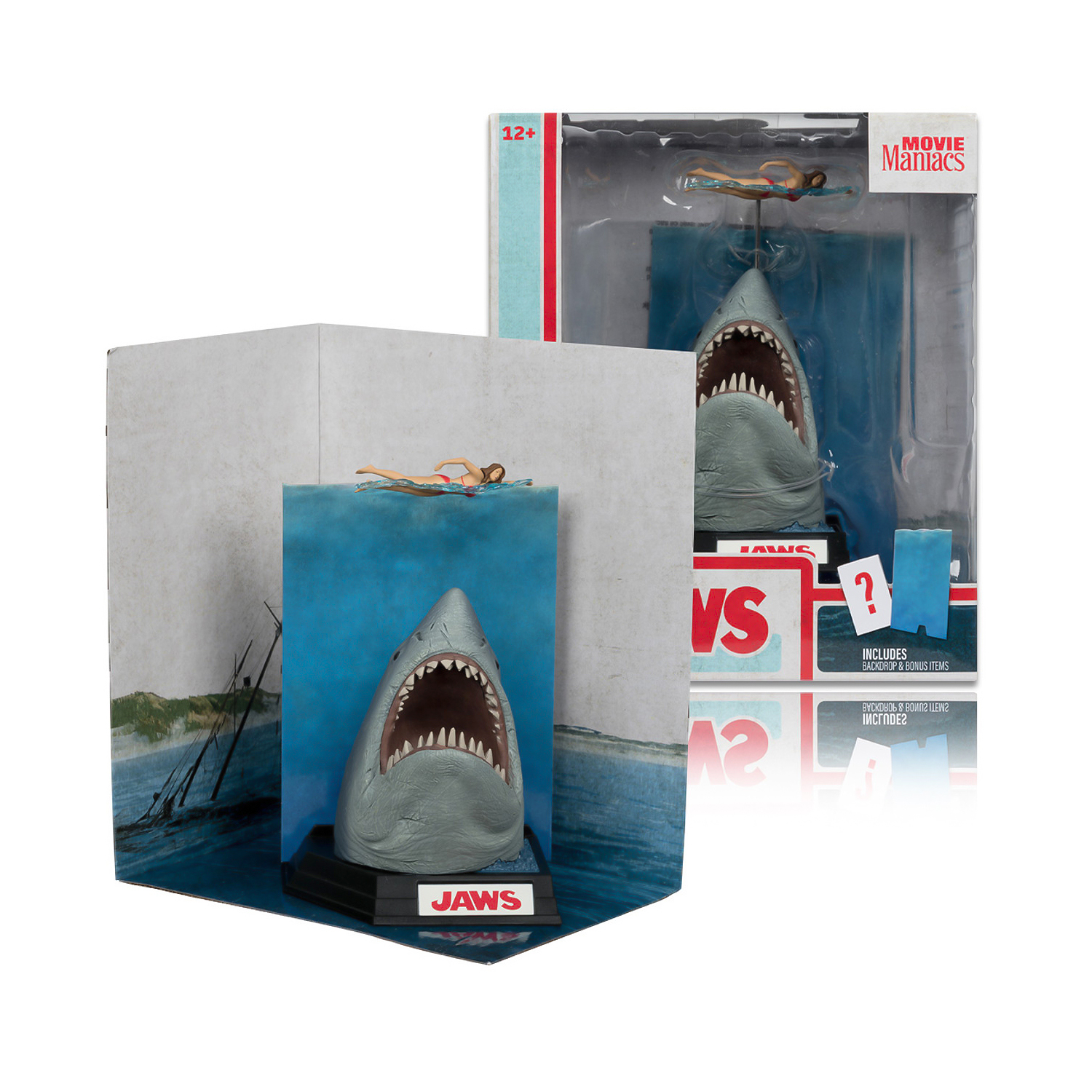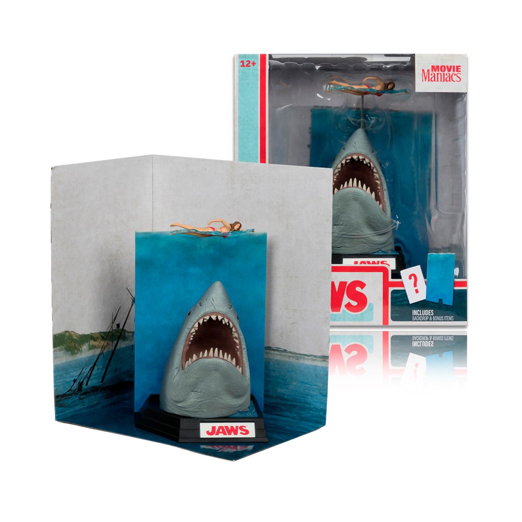 Diorama de unos 15 cm, increíblemente detallado y altamente decorado basado en la icónica película ‘Tiburón’. Los accesorios incluyen un telón de fondo impreso y una base ambiental, una tarjeta de arte coleccionable y una base de exhibición. También incluye un artículo de bonificación secreto.