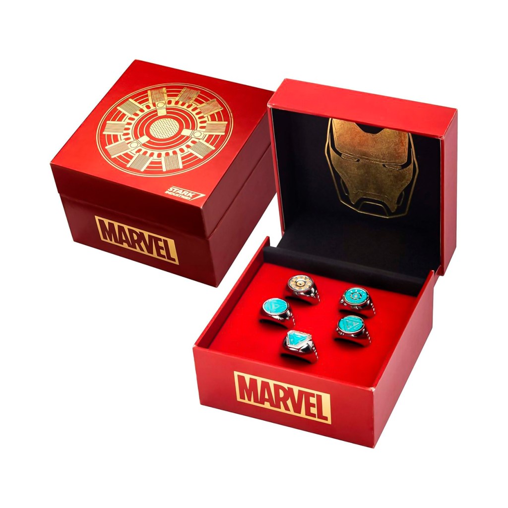 ¡Ejerce el poder de la tecnología creada por Tony Stark con la colección de anillos de los Arc Reactors de ‘Iron Man’! Este set de anillos de ‘Iron Man’ está inspirado en los reactores de arco que lleva el superhéroe de Marvel en sus diferentes armaduras.
