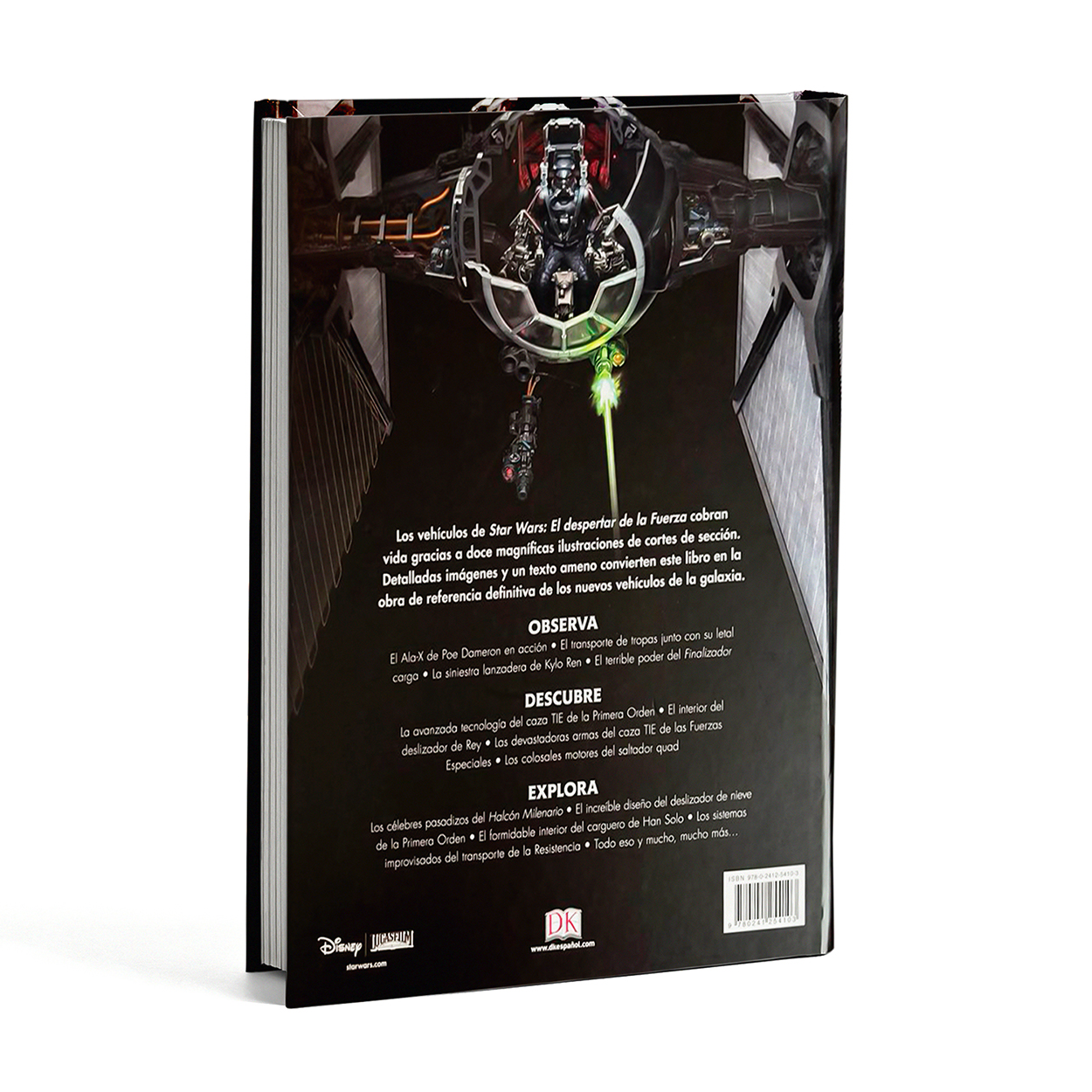 ‘Star Wars: El Despertad de la Fuerza’: Naves y vehículos en detalle presenta doce espectaculares ilustraciones que dan vida al nuevo armamento, a los vehículos y a la tecnología, con textos que explican las particularidades de todos los artefactos novedosos hasta el más mínimo detalle.