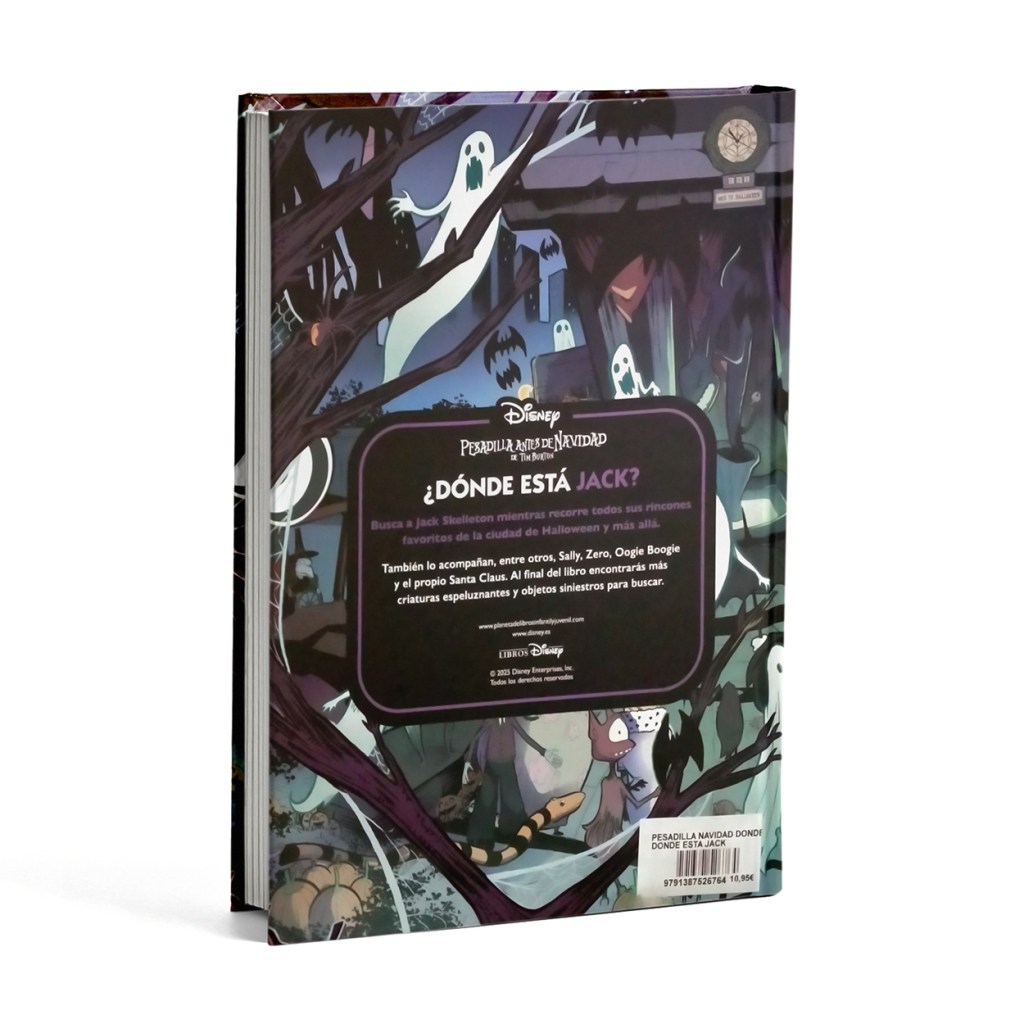 Busca a Jack Skelleton mientras recorre todos sus rincones favoritos de la ciudad de Halloween y más allá. También lo acompañan, entre otros, Sally, Zero, Oogie Boogie y el propio Santa Claus. Al final del libro encontrarás aún más criaturas espeluznantes y objetos siniestros para buscar.