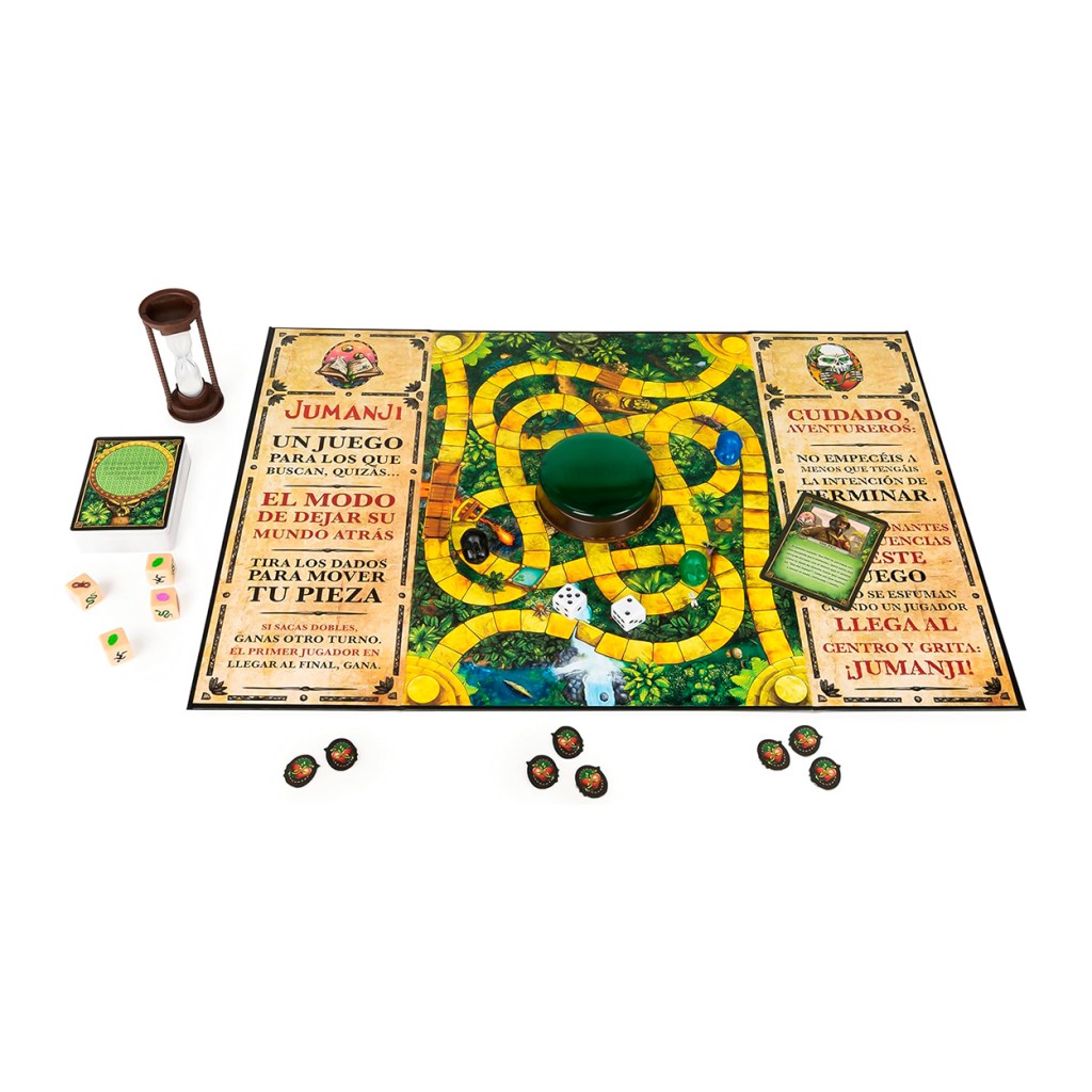 ¡No empieces si no tienes intención de acabar! El juego de mesa Jumanji en su versión española os transportará a ti y a tus compañeros aventureros a la selva, donde tendréis que resolver acertijos y completar desafíos mientras intentáis conservar vuestras fichas de vida.