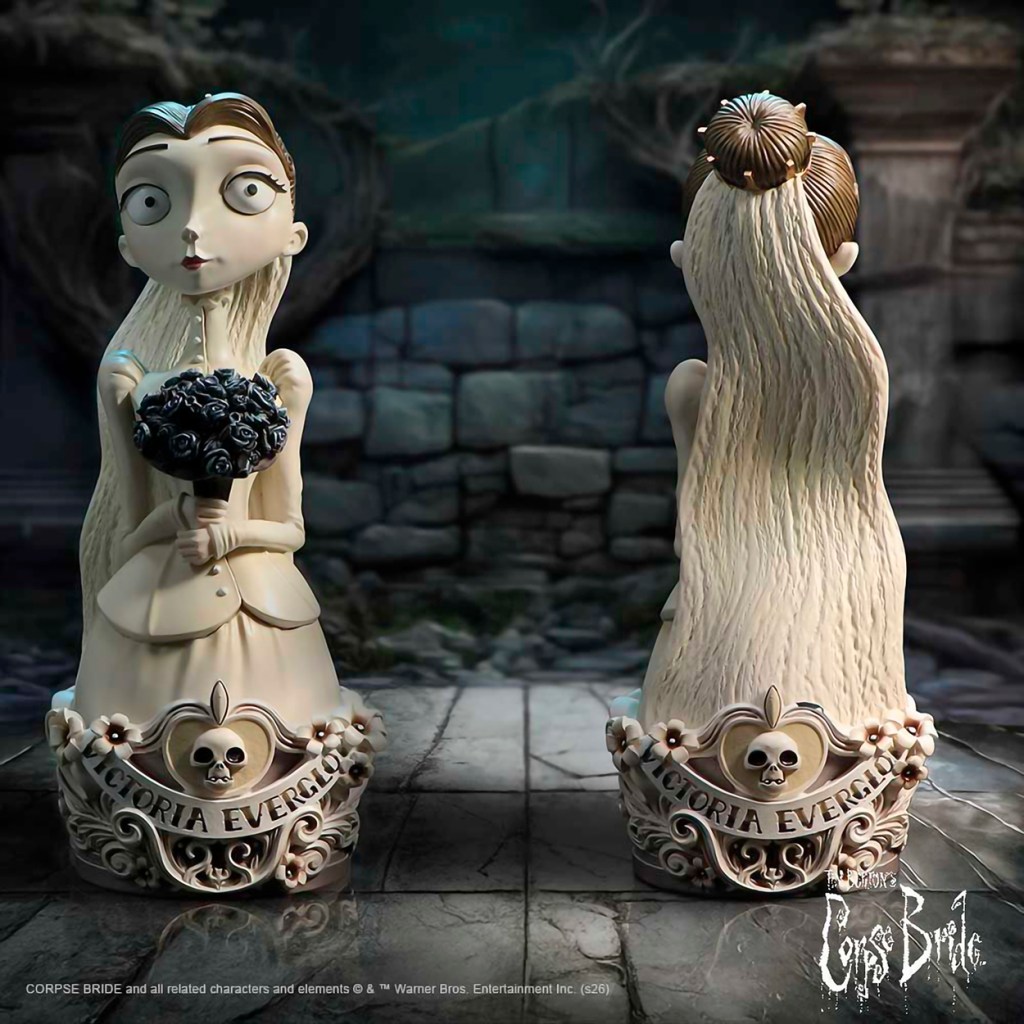 El busto de Victoria de La Novia Cadáver es un homenaje inquietantemente hermoso a uno de los personajes más queridos de Tim Burton. Capturada con su icónico vestido de novia, Victoria es retratada con su gracia y sonrisa características, lo que convierte a este busto en un objeto de colección esencial para los fanáticos del romance gótico y la fantasía oscura.