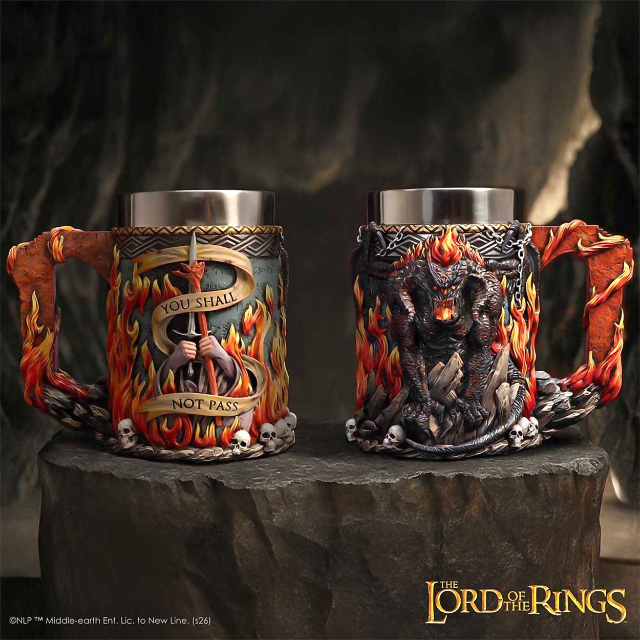 Jarra de El Señor de los Anillos con licencia oficial, inspirada en la aterradora presencia del Balrog en la épica escena de las Minas de Moria. Esta llamativa pieza captura el poder puro y el drama de uno de los momentos más memorables de la franquicia.