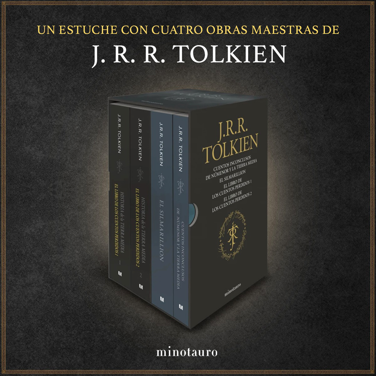 Estuche de 4 libros que incluye las ediciones revisadas de ‘El Silmarillion’ y ‘Cuentos Inconclusos’ y los dos primeros volúmenes de ‘Historia de la Tierra Media’.