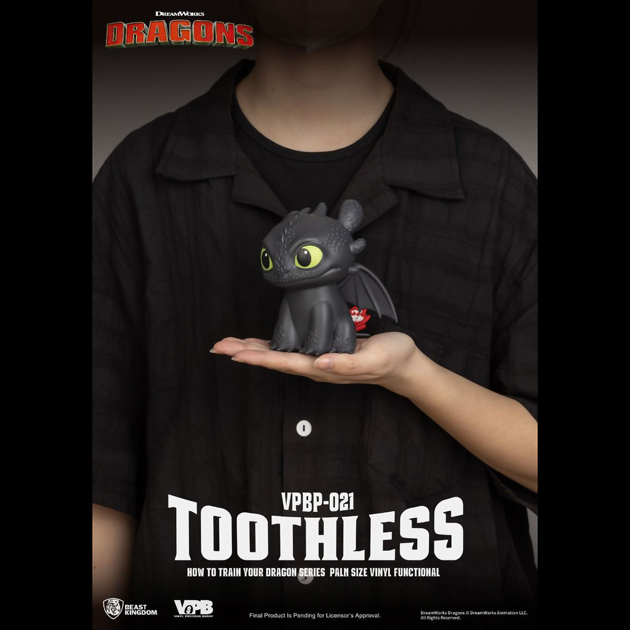 - El detallado esculpido presenta las características escamas de Desdentao, sus expresivos ojos y su icónica cola roja protésica, rindiendo homenaje a su profundo vínculo con Hipo