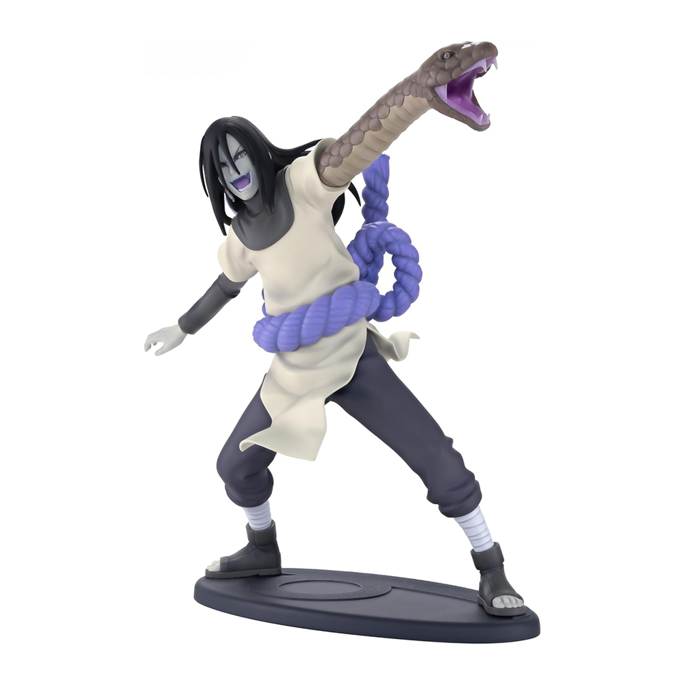 - Captura la presencia inquietante de Orochimaru con su tez pálida, ojos serpentinos y túnica de marca registrada, imprescindible para los fanáticos del legendario Sannin