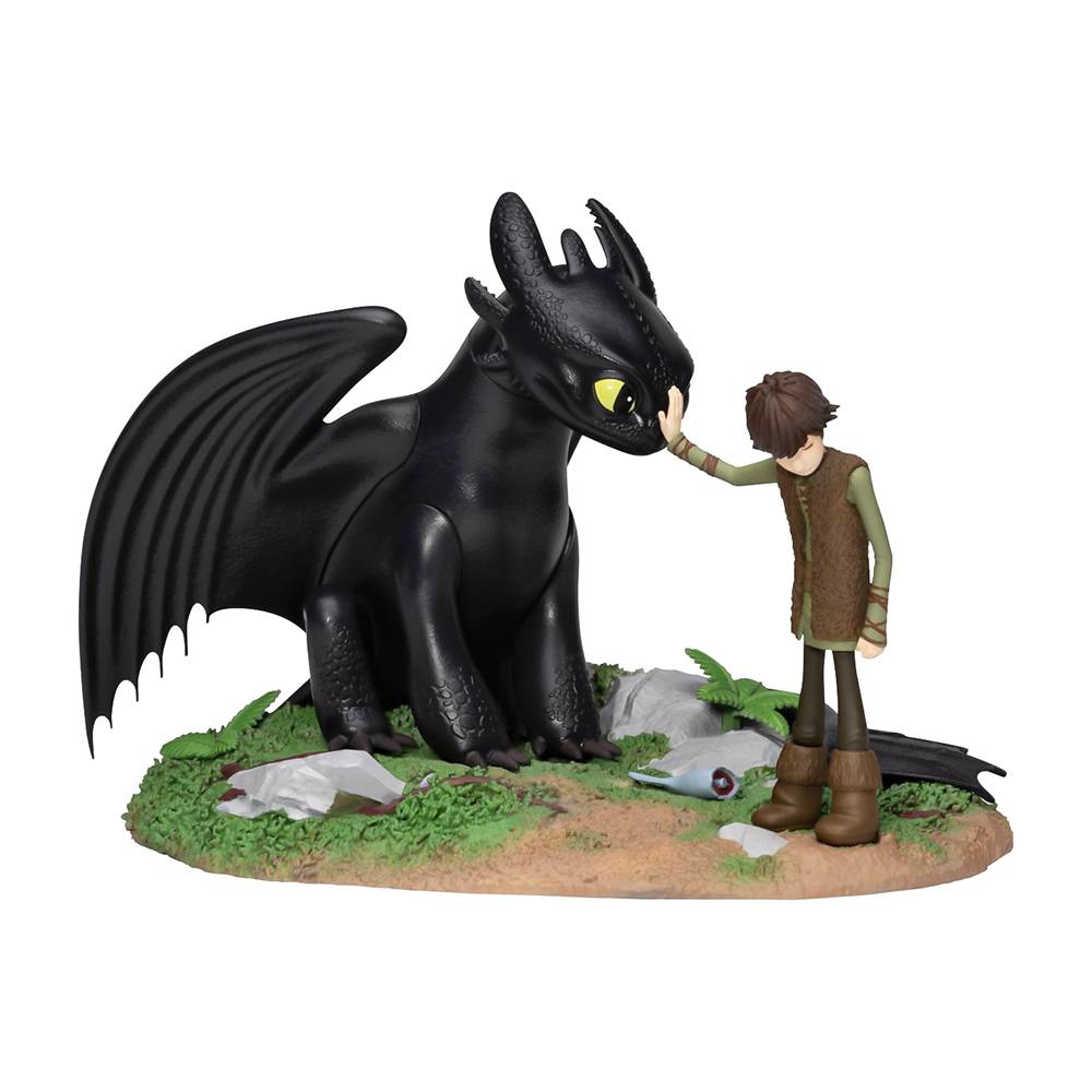 - Esculpida con maestría en 3D, la escena captura el valiente gesto de Hipo y la mirada cautelosa de Desdentado, simbolizando el nacimiento de la confianza entre dos mundos