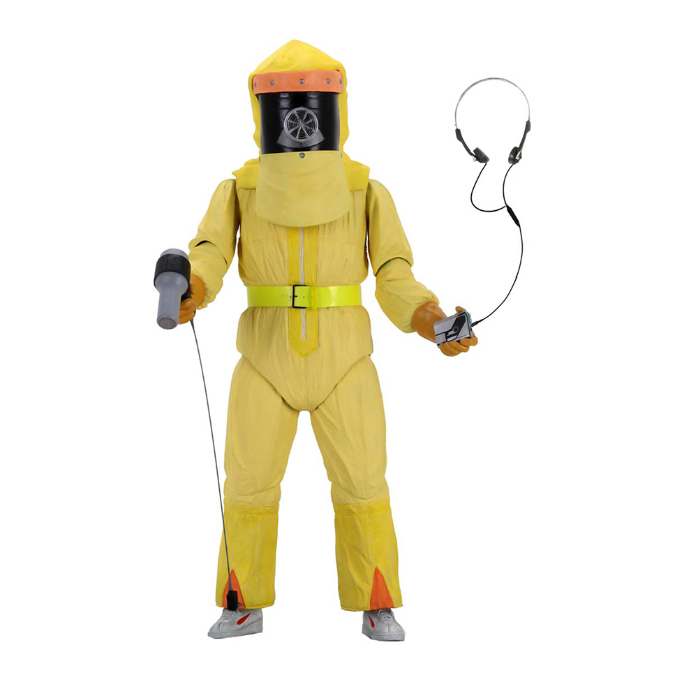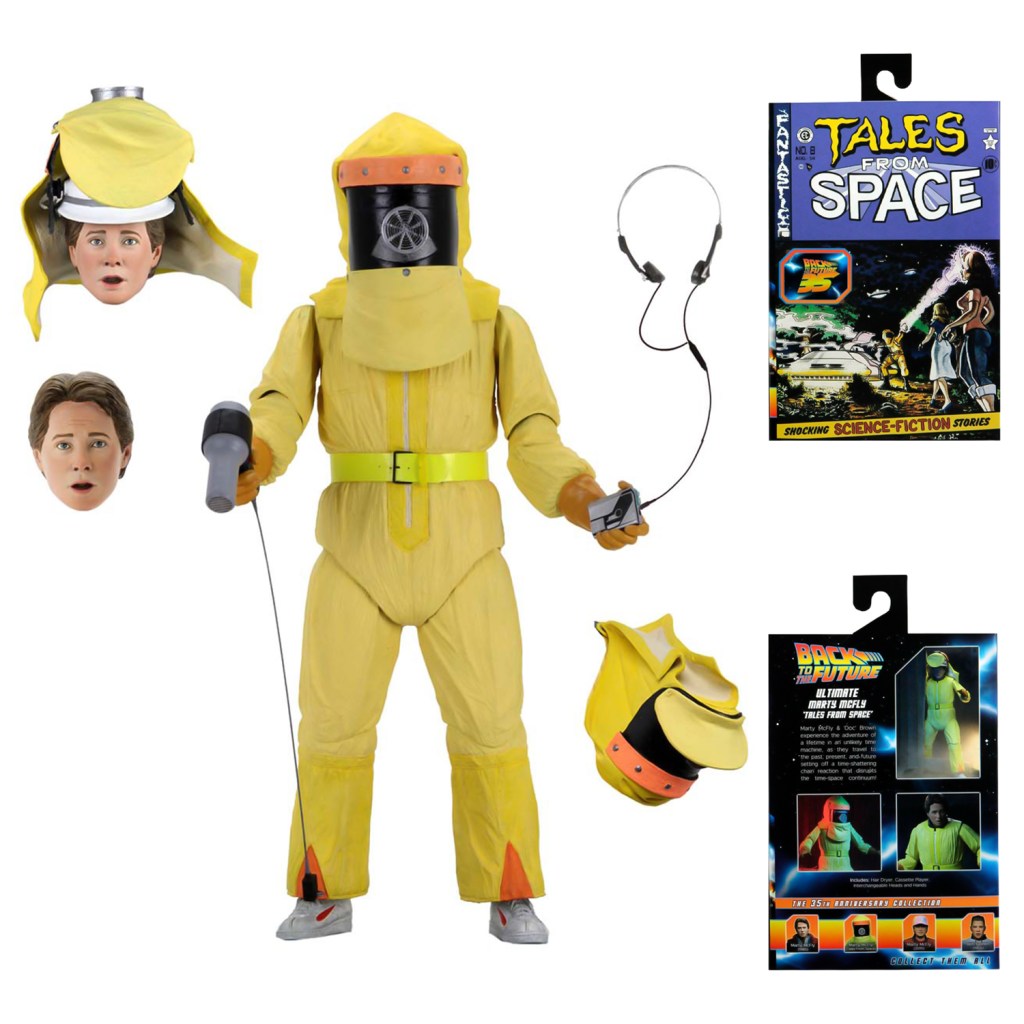 - Marty viste un traje de protección química con cabezas y capuchas intercambiables para representar su apariencia como visitante del planeta Vulcano