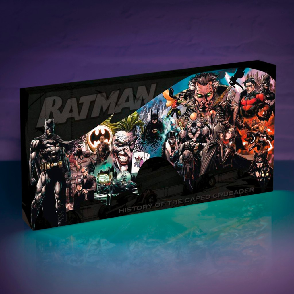 Este lienzo iluminado único de Batman se verá increíble de pie en su escritorio, estante o colgado en su pared. Los LED en el interior hacen que la obra de arte original se ilumine dando un brillo ambiental y resaltando los detalles del diseño.